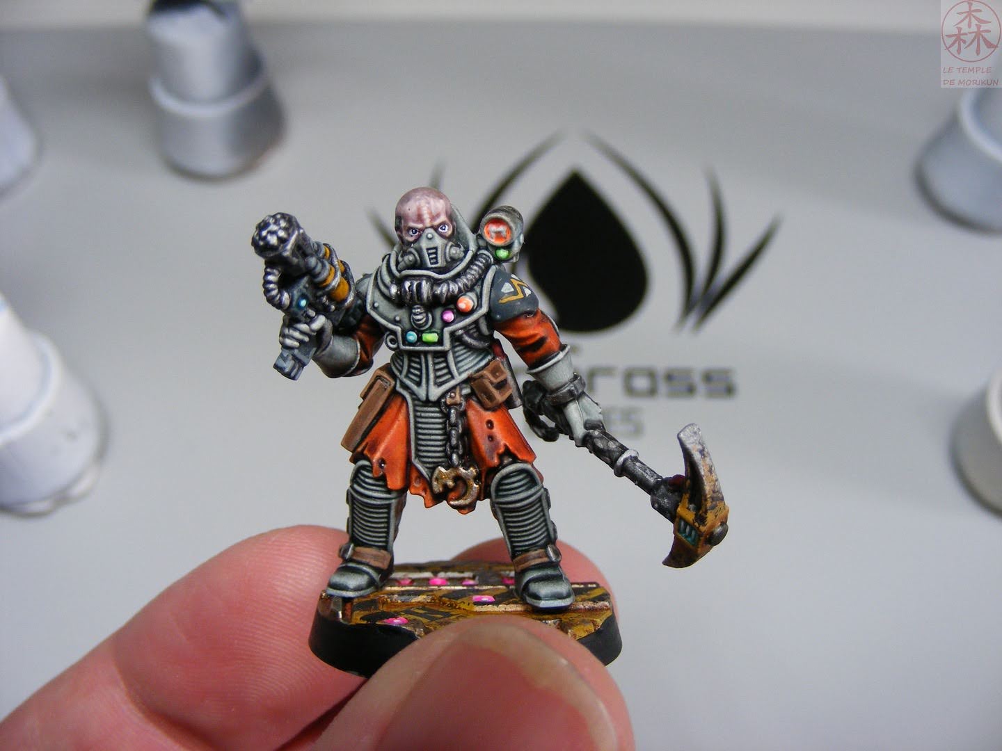 | Franchement, il n'est pas foncièrement malveillant mon primus ? Avec son teint blafard maladif, son troisième bras très pratique pour la littérature qu'on ne lit habituellement que d'une main et son matos intimidant ? J'ai franchement adoré peindre ce spécimen xénos proprement écœurant ^^ |