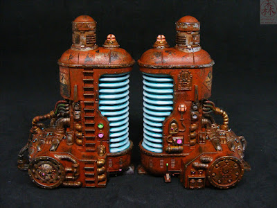 Je voulais peindre le mien en restant dans le thème résolument ouvrier... Mais en y apportant la touche personnelle du Temple comme vous allez le voir (GW avait adopté un schéma avec beaucoup de jaune... Et si cette couleur ne me pose désormais plus de problème au point d'être devenue une de mes préférée, j'en avais déjà peint pas mal jusqu'à très récemment).
