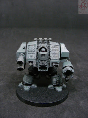 Depuis que je me suis "mis aux warhammer", les dreanoughts de l'univers 40K m'ont toujours énormément plu. Beaucoup. Déjà rien que le lore du truc est énorme : un héros space marine tellement explosé par les combats qu'il ne reste plus qu'un cerveau, une colonne vertébrale parcellaire, un poumon ici et un œil là... Est balancé dans une exo-armure massive et renvoyé au combat tous les 200-300 ans en cas de besoin jusqu'à ce qu'il soit vraiment très mort et ce, de façon très définitive.